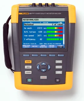 El equipo de mano también ofrece mediciones que permiten determinar la eficiencia de un motor (es decir, la conversión de energía eléctrica en par mecánico) y la potencia mecánica en condiciones de carga operativa. Estas medidas permiten a los encargados de mantenimiento determinar la potencia operativa de los motores en servicio en comparación con su potencia nominal. De esta forma se determina si el motor funciona con sobrecarga o si, por el contrario, su potencia es excesiva para la aplicación, lo que causa un desperdicio de la potencia y el aumento de los costes.