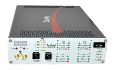 Con las características clave que pueden encontrarse en los demás analizadores SAS/SATA, el BusXpert Micro II es una unidad portátil y ligera que soporta hasta 72 GB de búfer de captura, acelerada por hardware Gigabit Ethernet, datos de seguimiento pre-indexados y comprimidos, y varios procesadores de análisis.
