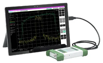Su tamaño ultra portátil permite llevarlo en el bolsillo del técnico para pruebas de campo, mientras que su capacidad de barrido continuo y su formato con alimentación USB mediante una tablet reduce el número de equipos que se precisa transportar. También se adapta mejor que otros analizadores de espectro portátiles.