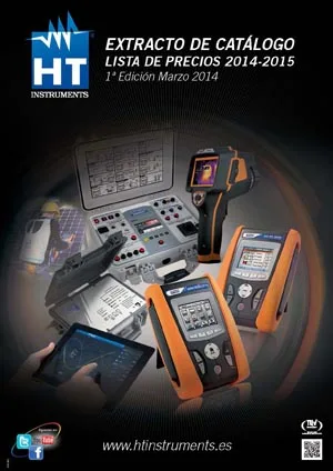 Catálogo de instrumentaciónHT Instruments presenta, a través de su nuevo extracto de catálogo de instrumentación 2014, las novedades sobre Instrumentación para la verificación de instalaciones eléctricas según R.E.B.T., analizadores de redes eléctricas trifásico, certificadores de cuadros y máquinas eléctricas, cámaras termográficas de altas prestaciones, analizadores del rendimiento y curvas iv para instalaciones fotovoltaicas, multímetros, pinzas amperimétricas, calibradores de procesos, telémetros digitales, localizadores de cables, así como una nueva pinza amperimétrica y un nuevo detector de tensión dentro de la amplia gama de Instrumentación GEF.