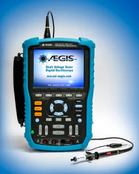 Comprobador de motores industriales El AEGIS Shaft Voltage Tester Digital Oscilloscope es un comprobador de motores industriales que ha sido concebido y fabricado para permitir a los mecánicos la detección, en motores de uso industrial, de fallos y daños que puedan afectar a los cojinetes, todo ello de una forma fácil.