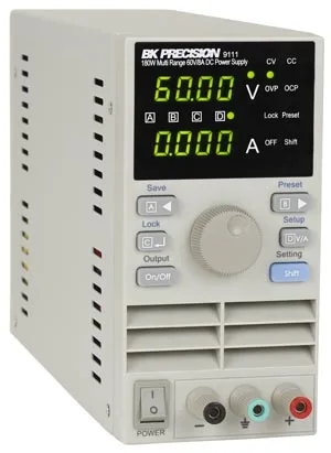 Manteniendo la contención en el tamaño de la serie 9110, el nuevo modelo 9111 proporciona 80 W extras de potencia y un mayor rango de corriente de salida. El panel frontal ofrece un panel display de 10 mV / 1 mA, control de salida on / off, y un mando de control giratorio para ajustar el voltaje y la configuración.