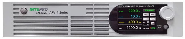 La serie AFV-P proporciona voltajes de salida que van desde los 0 a los 310 VAC, y frecuencias que van desde los 40 a los 500 Hz (con opción de alta frecuencia, de los 15 a los 1.000 Hz). Además, podemos programar el dispositivo para que proporcione alimentación DC que vaya desde los 300 a los 2.500 W a 0-210/0-420 VDC.