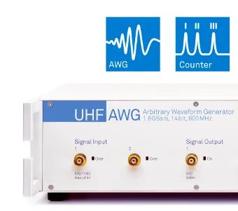 El generador de formas de onda UHF arbitrarias (AWG por sus siglas en inglés) que incorpora el dispositivo de Zurich es de doble canal, trabajando en la banda de los 600 MHz con 128 MSa de memoria de forma de onda por canal, 1,8 GSa/s temporal, y 14 bits de resolución vertical.