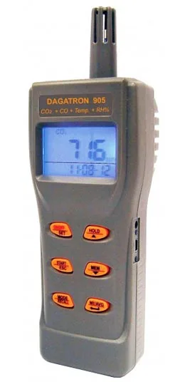 Dagatron presenta el nuevo medidor de calidad de aire modelo D-905, un medidor multifunción medioambiental capaz de medir todos los parámetros relacionados con la calidad del aire como pueden ser el CO2, CO, temperatura, humedad relativa, punto de rocío y WBT bulbo húmedo.