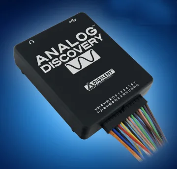 El Analog Discovery permite a los desarrolladores construir y testar circuitos analógicos y digitales en prácticamente cualquier entorno (dentro y fuera del laboratorio).