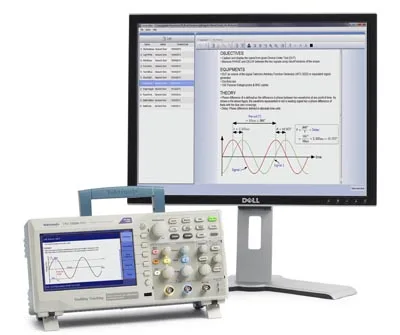 Los osciloscopios económicos de 2 canales de la serie TBS1000B-EDU son los primeros del mercado con un sistema pedagógico integrado diseñado para ayudar a los estudiantes a aprender de manera más eficiente y eficaz y reducir al mínimo el tiempo que los instructores necesitan dedicar a la preparación y realización de las sesiones de laboratorio. Gracias al material didáctico integrado, los instructores pueden hacer que el contenido de sus ejercicios de laboratorio pueda verse en el osciloscopio y los estudiantes pueden capturar convenientemente los resultados de laboratorio directamente desde el instrumento.