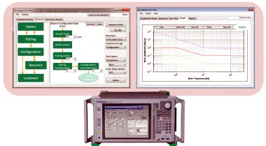 El software de testeo MX183000A controla el MP18000A, la fluctuación (jitter) de la fuente de señal de modulación, el PPG (Pulse Pattern Generator) y el detector de errores para poder llevar a cabo el control de estado de la máquina de la interfaz del bus serie de alta velocidad y las pruebas de tolerancia a fluctuaciones. Con ello se recorta el tiempo necesario de prueba mientras se asegura la integridad y fidelidad de las mediciones de señal.